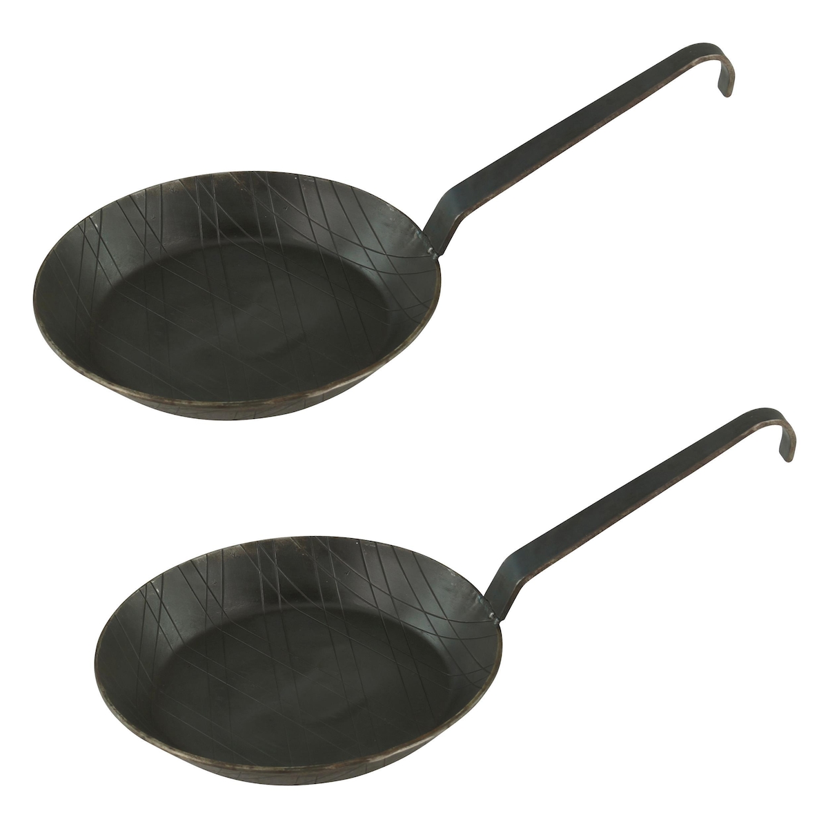 GVK ECO Schmiedeeiserne Brat- und Servierpfanne 2 Stück Ø 16 cm mit Hakenstiel