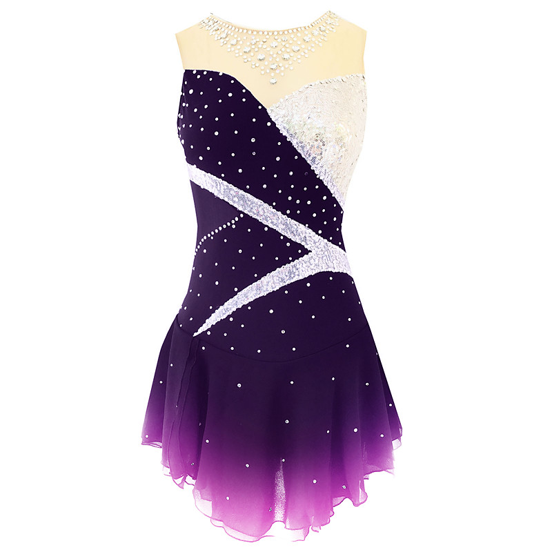 Figure Skating Dress Women's Girls' Ice Skating Dress Outfits Violet Dark Red Dusty Rose Spandex Micro-elastic Training Skating Wear Classic Crystal / Rhinestone Sleeveless Ice Skating Figure Skating