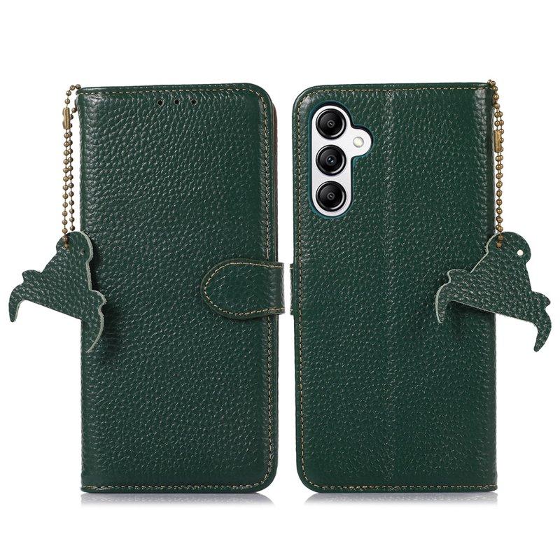 Genuine Leather Wallet Case Samsung Galaxy A35 5G RFID Skydd - Grön