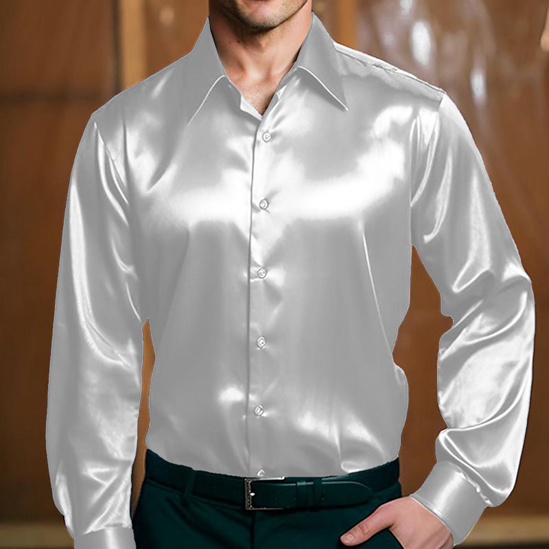 Men's Shirt Silk Like Satin Shirt Dress Shirt Casual Shirt Button Up Shirt Plain Formal Wedding WhiteGreen Greenred WhiteBlack WhiteBlue Long Sleeve Lapel Spring Fall All Seasons Clothing