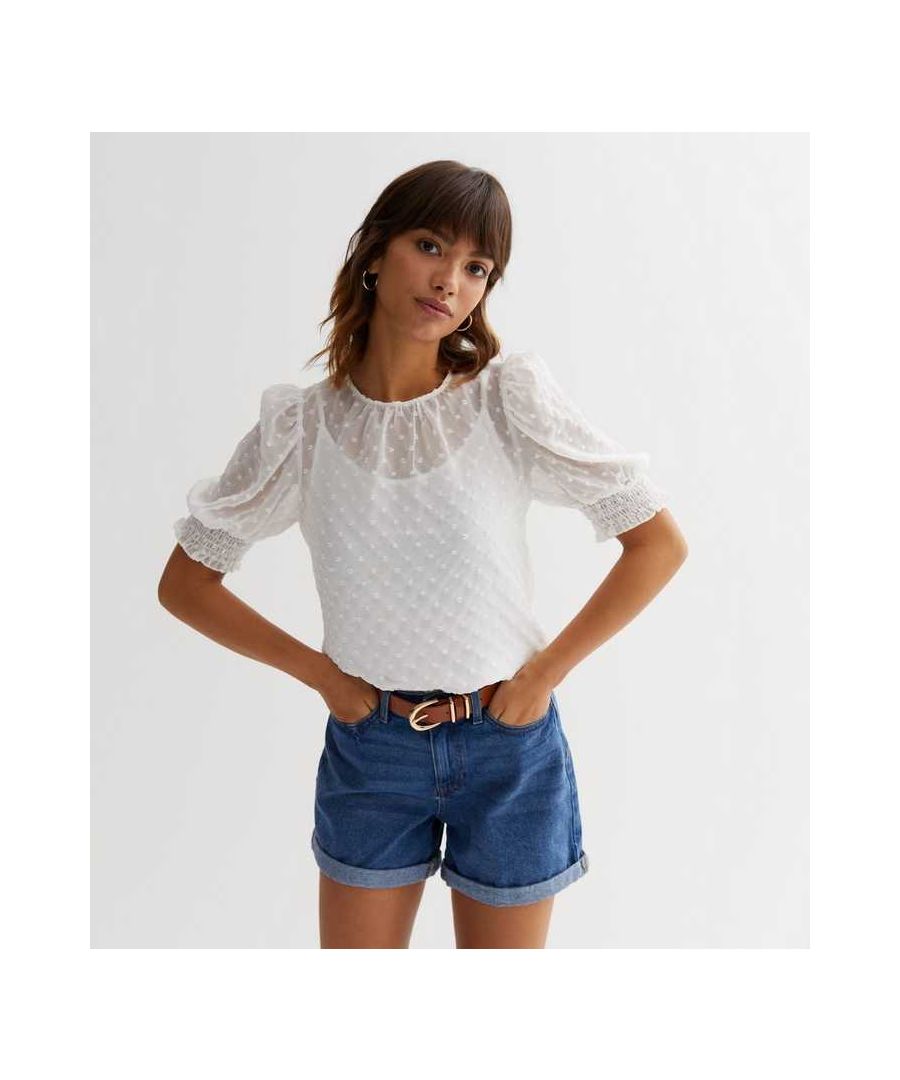 Gini London Womens Dobby Chiffon Shirred Cuff Blouse - White - Size 14 UK | Gini London Sale | Discount Designer Brands