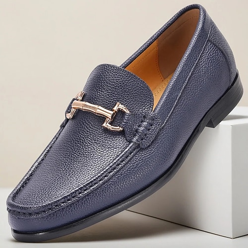 mocassini da uomo in pelle blu navy: eleganti scarpe slip-on con fibbia metallica per abbigliamento casual e business