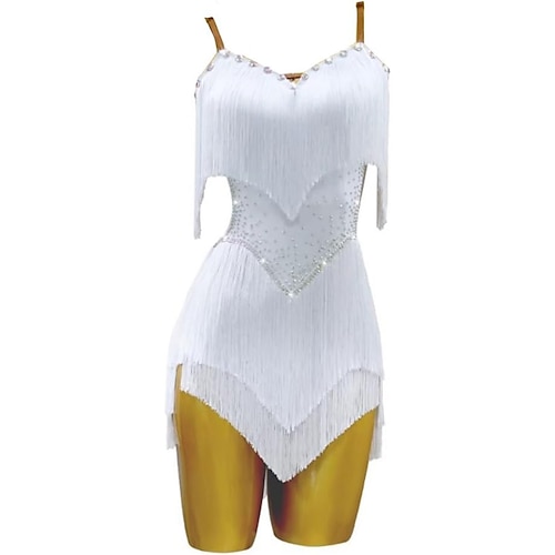 Lateinamerikanischer Tanz Kleid Kristall / Strass Quaste Unifarbe Damen Leistung Party Ärmellos Spandex