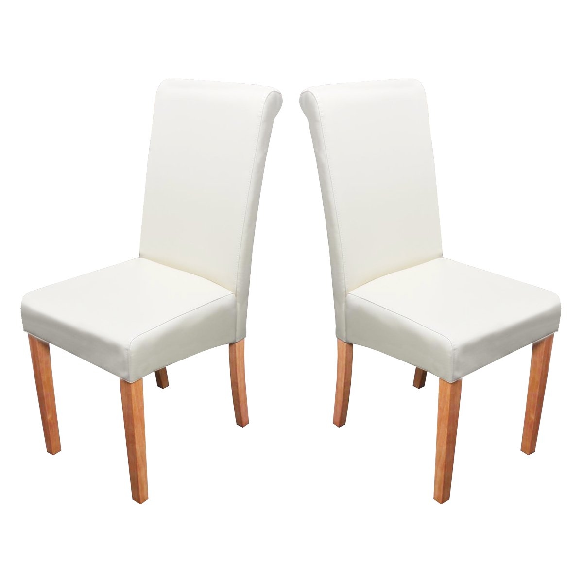 CHEFGASTRO 2er-Set Esszimmerstuhl Stuhl Küchenstuhl HxBxT 99x41x60cm Sitzhöhe 47cm Leder Creme helle Beine
