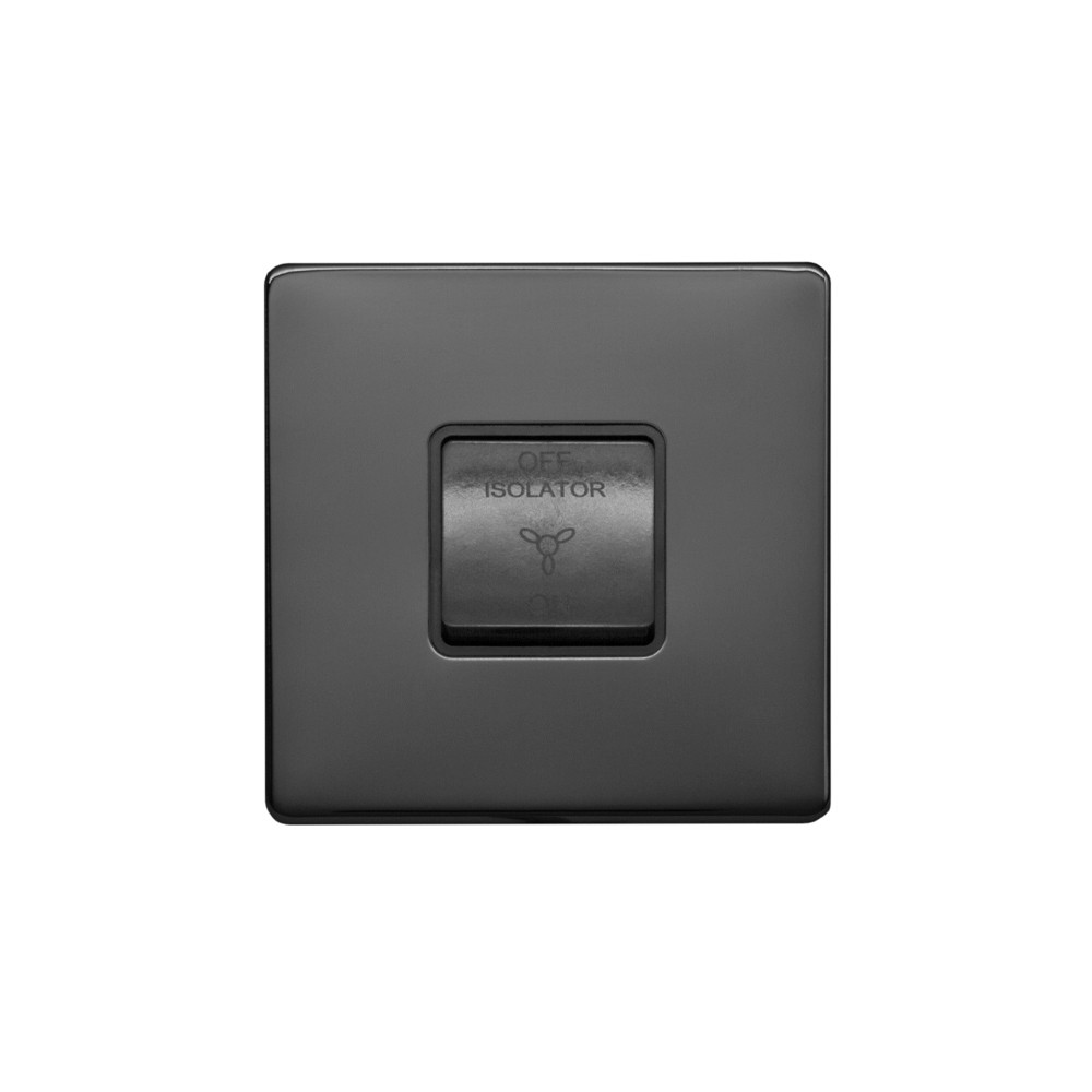 Lieber Black Nickel 10A 1 Gang 1 Way 3-Pole Extractor Fan Isolator Switch - Black Insert Screwless - Size: 86mm x 86mm x 2 mm