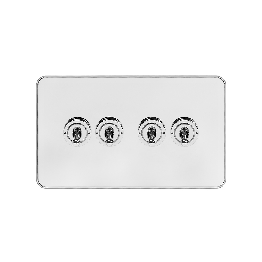 Soho Lighting White & Polished Chrome With Chrome Edge 20A 4 Gang 2 Way Toggle Switch Screwless - Size: 90mm x 150mm x 4mm