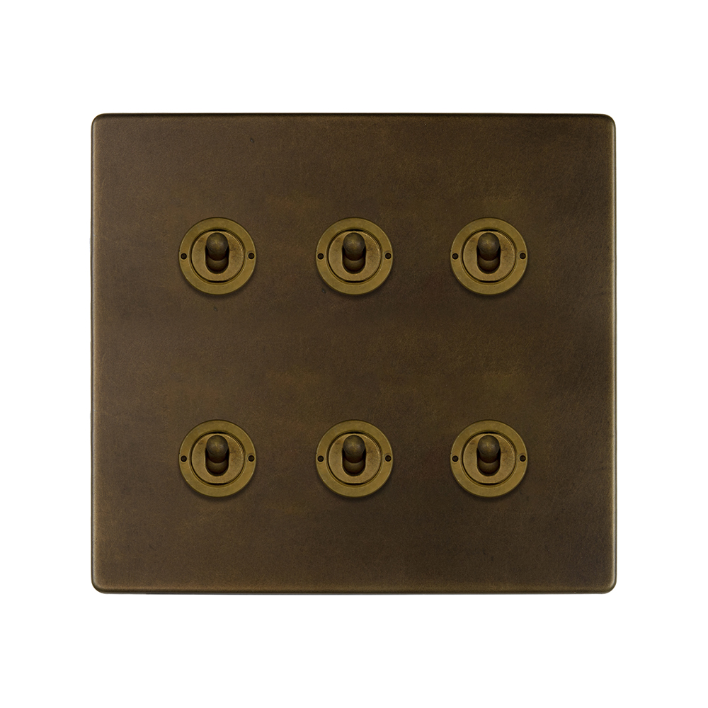 Soho Lighting Vintage Brass 6 Gang Toggle Light Switch 20A 2 Way - Size: H 146mm x W 146mm