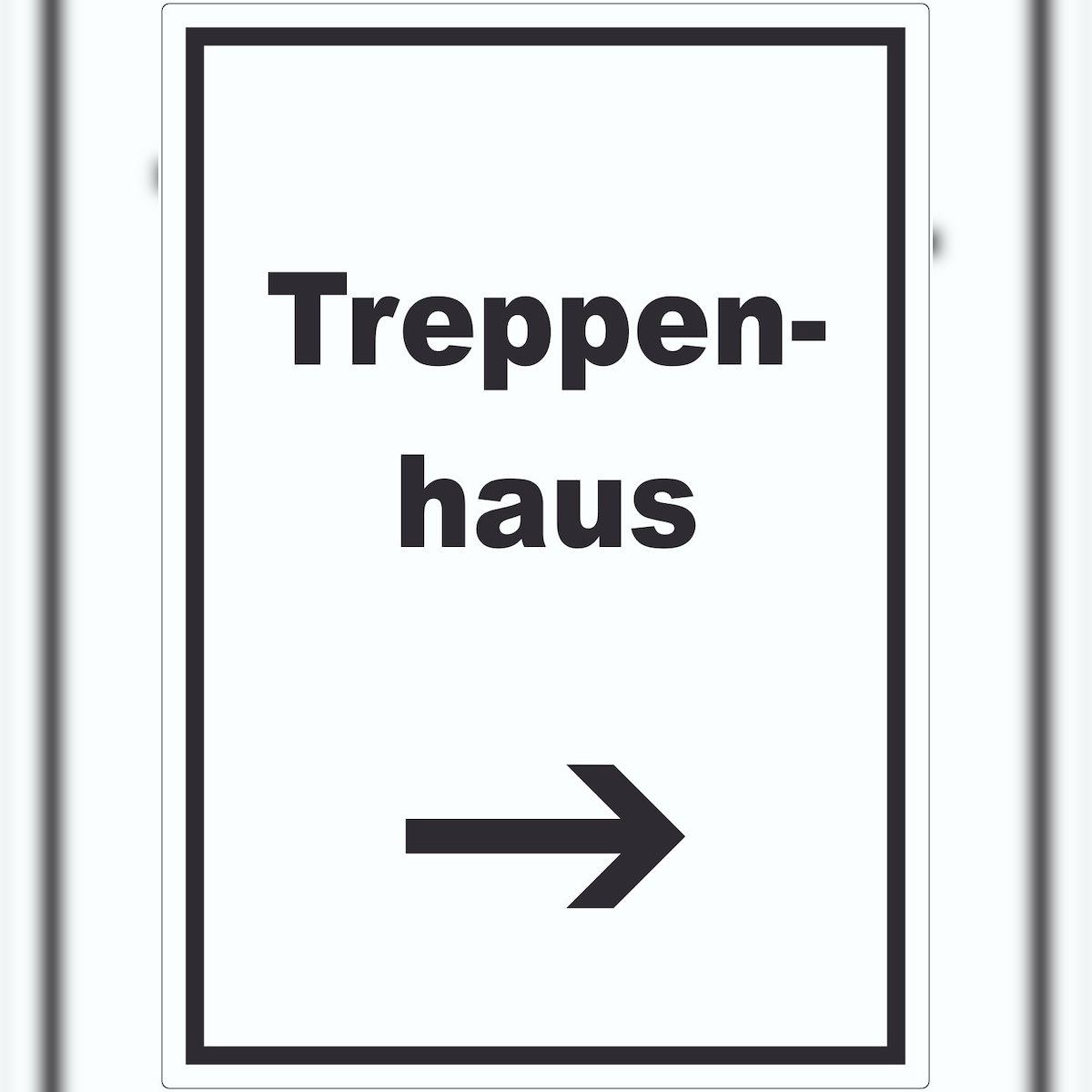 HB-Druck Treppenhaus Aufkleber mit Text und Richtungspfeil rechts Stufen steigen hochkant A8 (52x74mm)