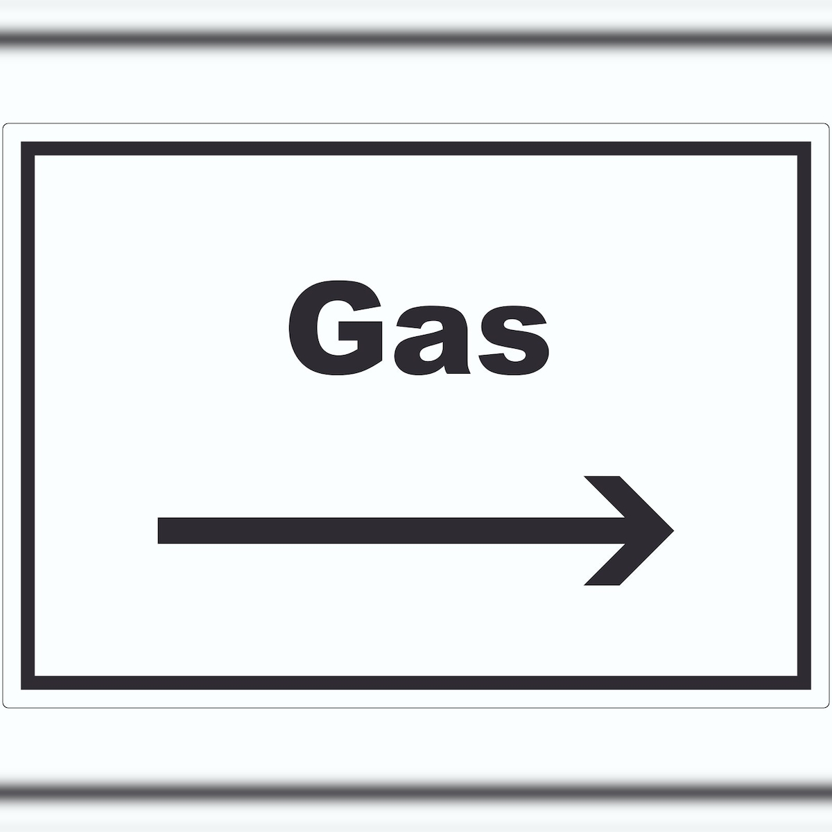 HB-Druck Gas Aufkleber mit Text und Richtungspfeil rechts Anschluss waagerecht A5 (148x210mm)