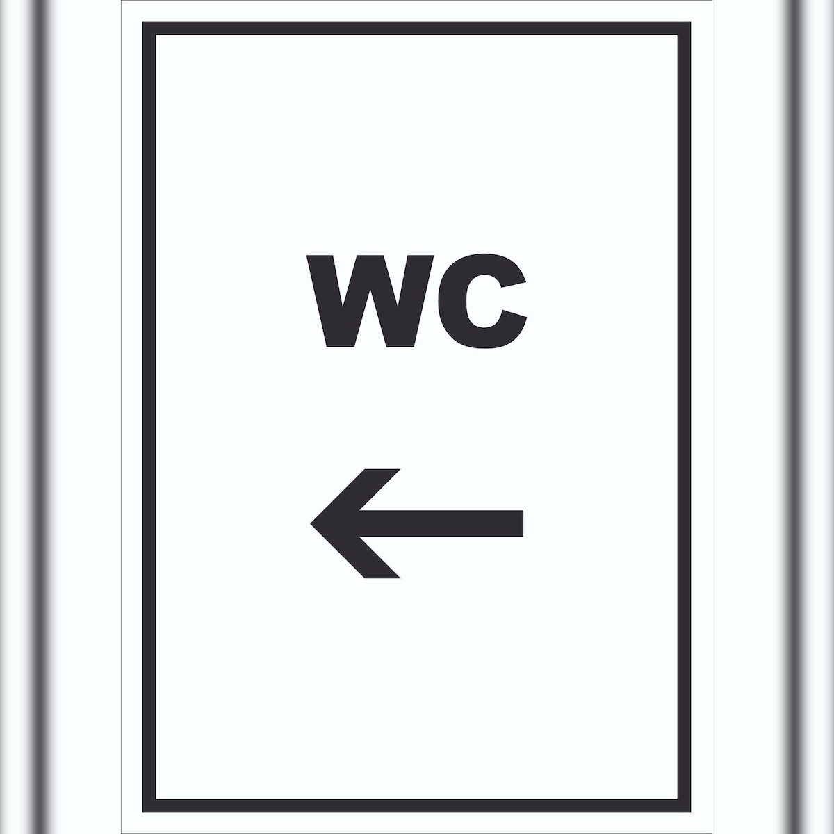 HB-Druck WC Schild mit Text und Richtungspfeil links Toilette Klo hochkant A3 Rückseite selbstklebend