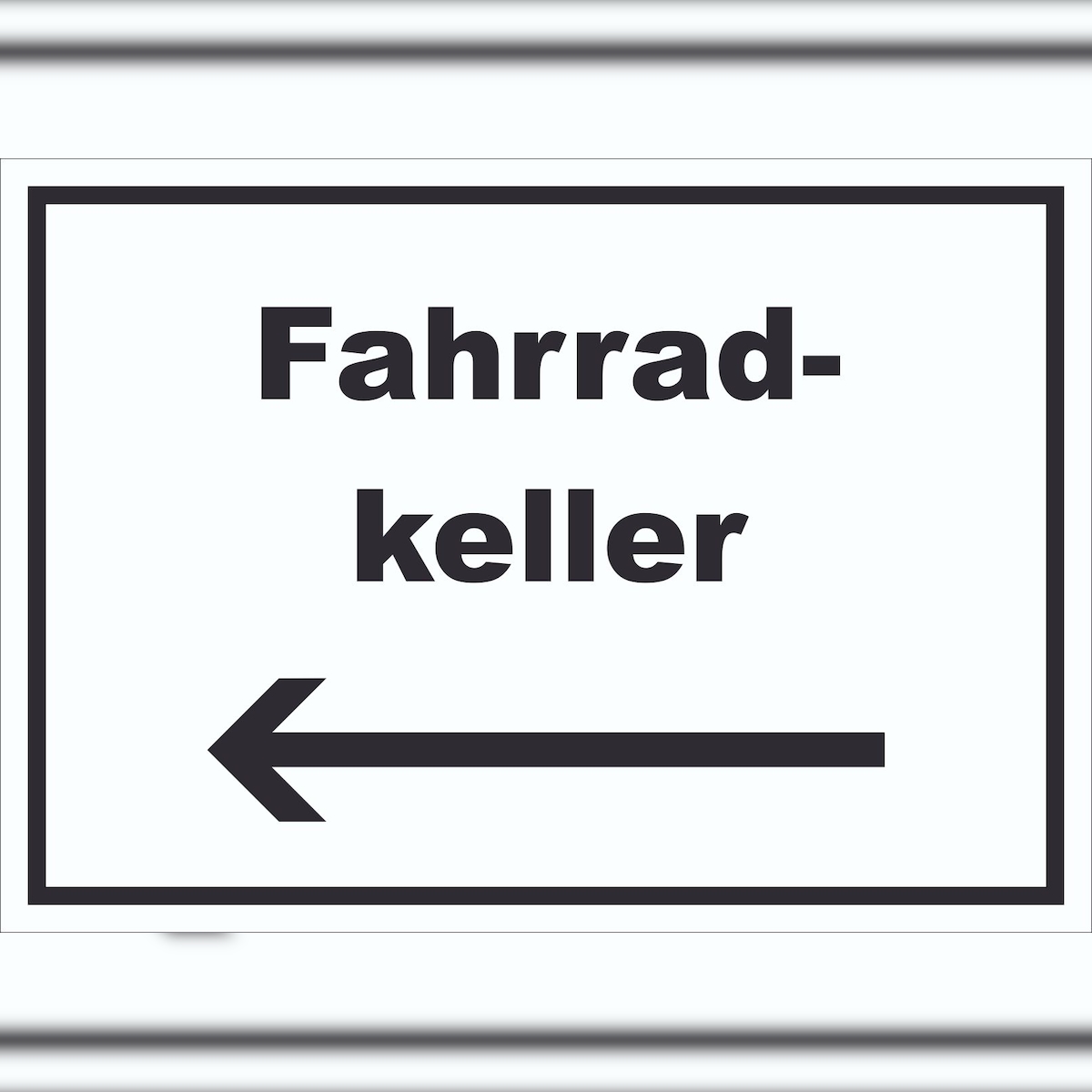 HB-Druck Fahrradkeller Schild mit Text und Richtungspfeil links Rad Bike waagerecht A0 Rückseite selbstklebend