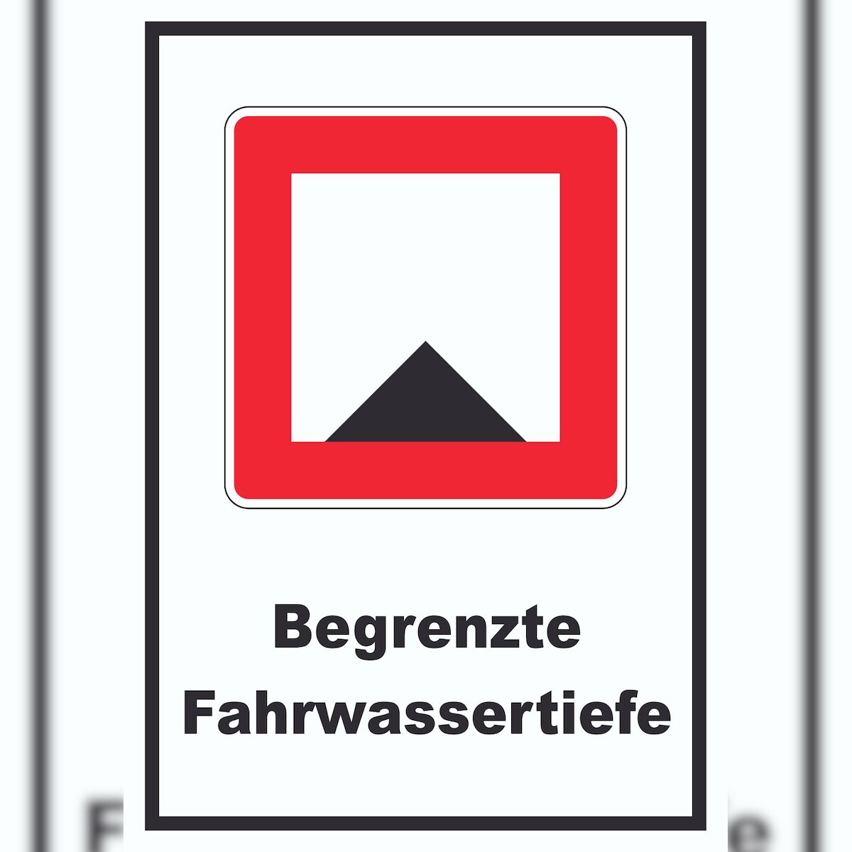 HB-Druck Begrenzte Fahrwassertiefe Tiefe unter Wassserspiegel begrenzt Symbol und Text A5 Rückseite selbstklebend