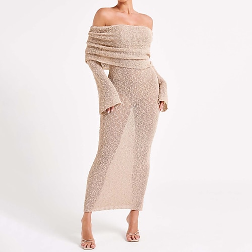 Per donna Abito Lungo Maxi Abito Vestito Estivo Moderno Spiaggia Vacanza Uscire Vestibilità regolare Semplice Manica Lunga Senza Spalle Nero Bianco Verde chiaro Albicocca Estate