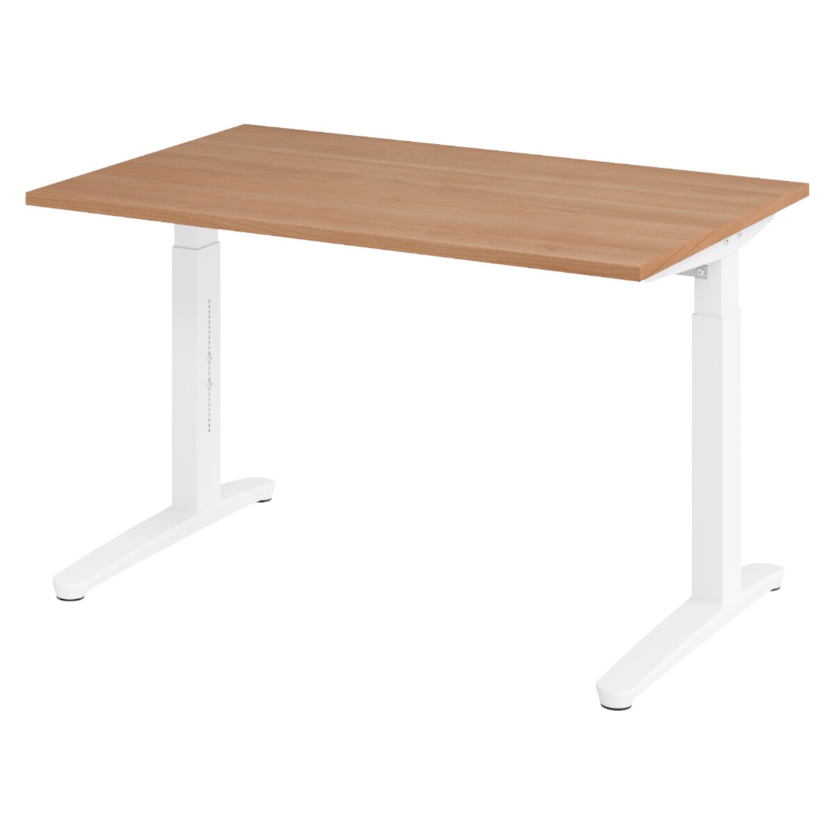 bümö manuell höhenverstellbarer Schreibtisch 120x80 in Nussbaum, Gestell in weiß - PC Tisch höhenverstellbar & klein, höhenverstellbarer Tisch Büro,