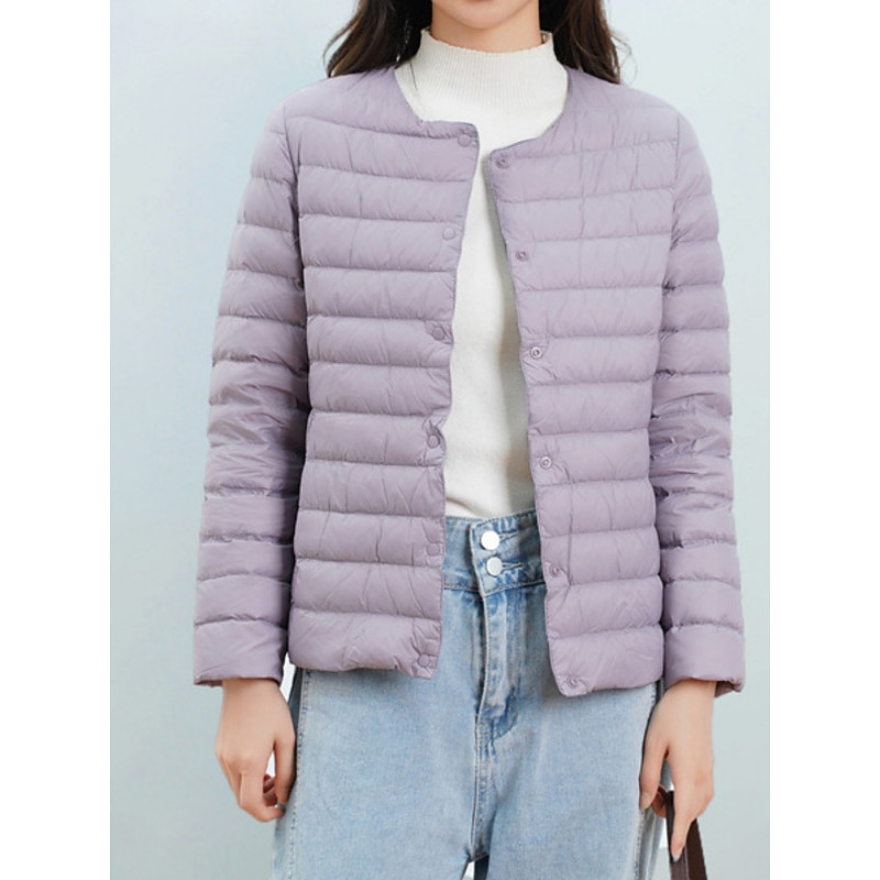 Women's Puffer Jacket Comfortable Breathable Zipper Pocket Casual Plain Vacation Street Casual Daily Wear Zipper Regular Crewneck Regular Fit Long Sleeve Outerwear Pink Blue Purple Spring Fall