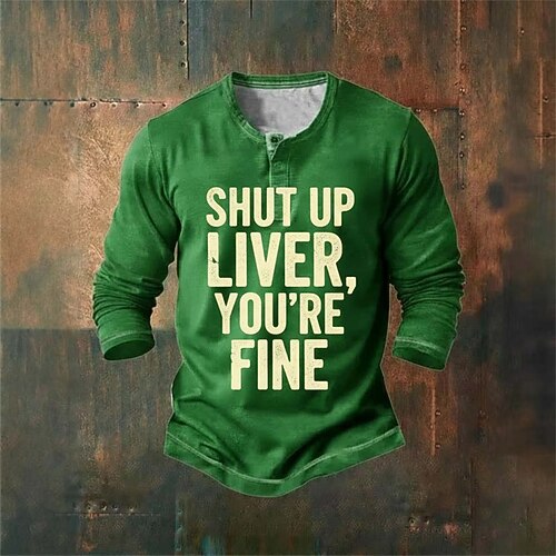 San Patrizio Per uomo Grafico Citazioni Detti Maglietta Maglia Henley Camicia a Maniche Lunghe Manica Lunga maglietta Stampa 3D Henley Camicia Moda Essenziale Classico Quotidiano Vacanza Giorno di