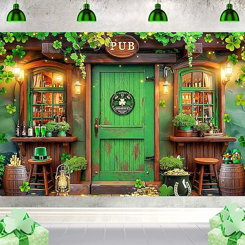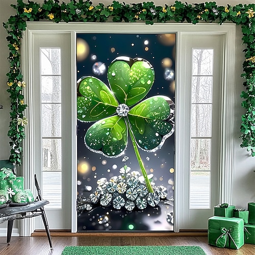 Festa di San Patrizio Poster Copertura della porta Banner per esterni Cappello verde Trifoglio Carino Moderno 3D Da serata Dormitorio Stanza per adolescenti Dormitorio universitario Ragazzi Man Cave