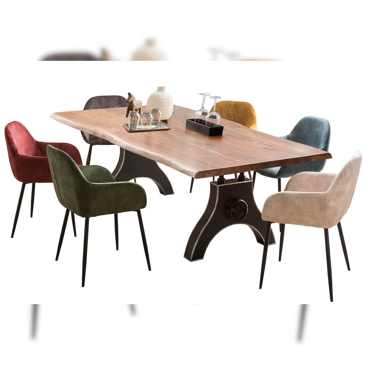 SIT Möbel Esstisch 160 x 85 cm | 36 mm Platte Akazie mit Baumkante | Gestell Metall X-Form | B 160 x T 85 x H 77 cm | 15560-41 | Serie TABLES & CO