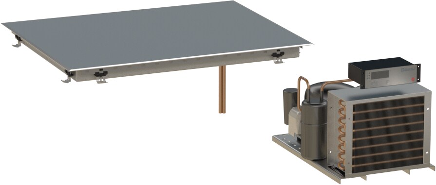 Kontakt-Kühlplatte "Glasgow", glatte Ausführung 670x42x530mm (BxHxT) steckerfertig mit Schnellkupplung