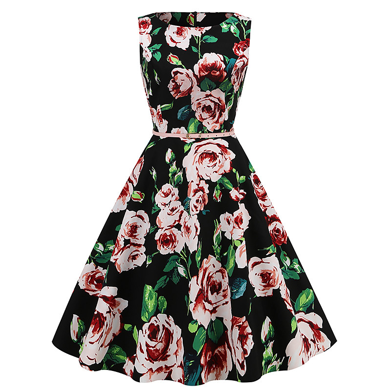 Retro Vintage 1950s Knee Length Swing Dress Flare Dress Sleeveless Floral Print Ball Gown Round Neck Fancy Dress Women's Masquerade Party Tea Party Casual Daily Adults' Dress Homecoming Dresses