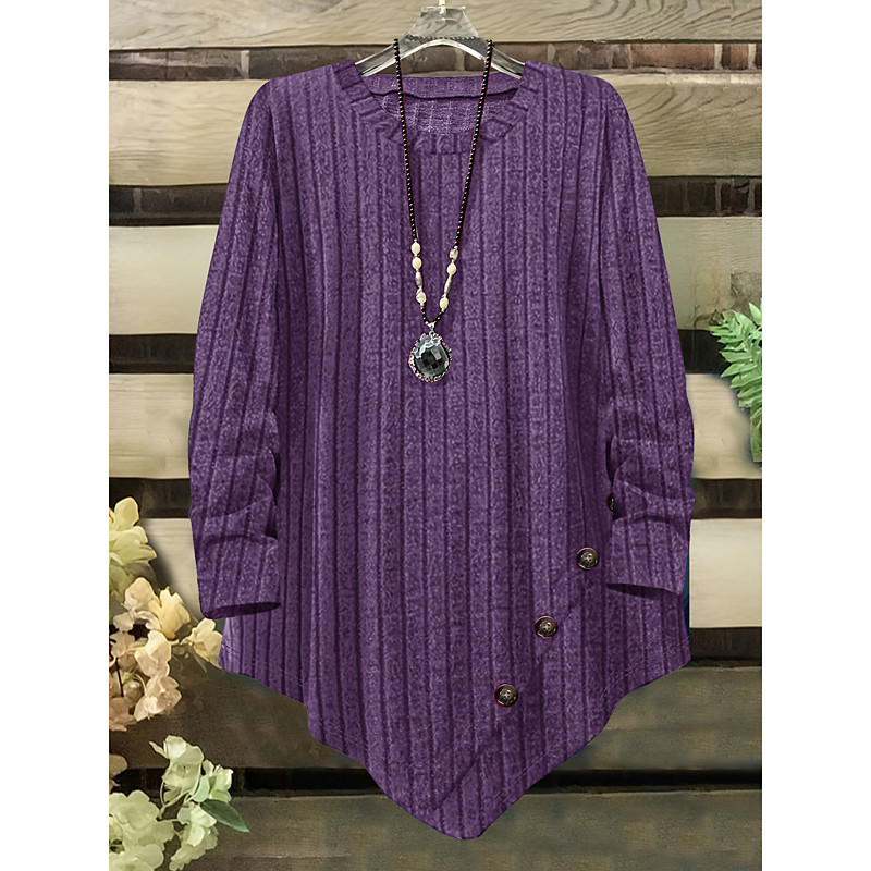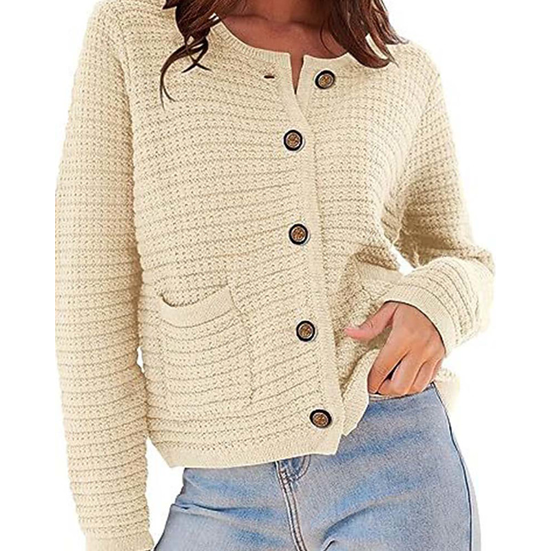 Women's Sweater Casual Soft Pure Color Ribbed Crew Neck Buttons Knitted Long Sleeve Regular Tops Knit Daily Outdoor Weekend White Yellow Spring Fall