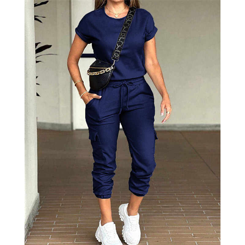 Women's Normal Jumpsuit Streetwear Solid Color Short Sleeve Crew Neck Drawstring Pocket Street Daily Regular Fit Black Light Green Pink Fall