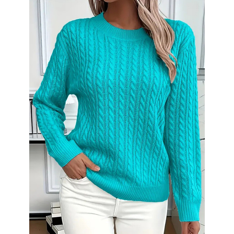 Women's Sweater Casual Soft Pure Color Ribbed Crew Neck Knitted Long Sleeve Regular Tops Knit Outdoor Daily Weekend Blue Light Grey Fall Winter