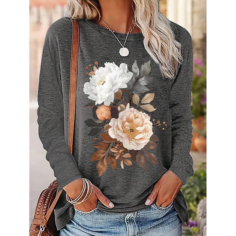 Women's T Shirt Floral Graphic Plants Fashion Stylish Classic Long Sleeve Crew Neck Round Neck Regular Tops Daily Weekend Print Gray Summer Spring Fall