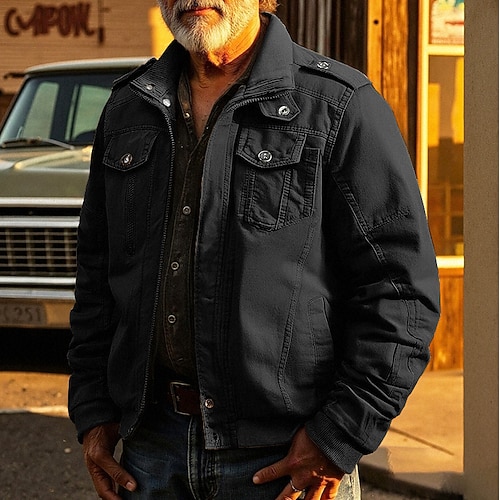 Per uomo Giacca utility Giacca Cargo Vacanza Quotidiano Resistente all'usura Tasca Primavera Autunno Semplice Moda Classico Collo alla coreana Regolare Nero Cachi Verde militare Giacca