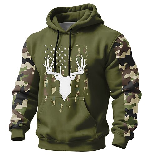Per uomo Cervo Felpa con Cappuccio Felpa Etnico Vintage Retrò Da caccia Girocollo All'aperto Abbigliamento casual alla moda Blu Nero Marrone Verde militare Coulisse Autunno Inverno progettista S M L