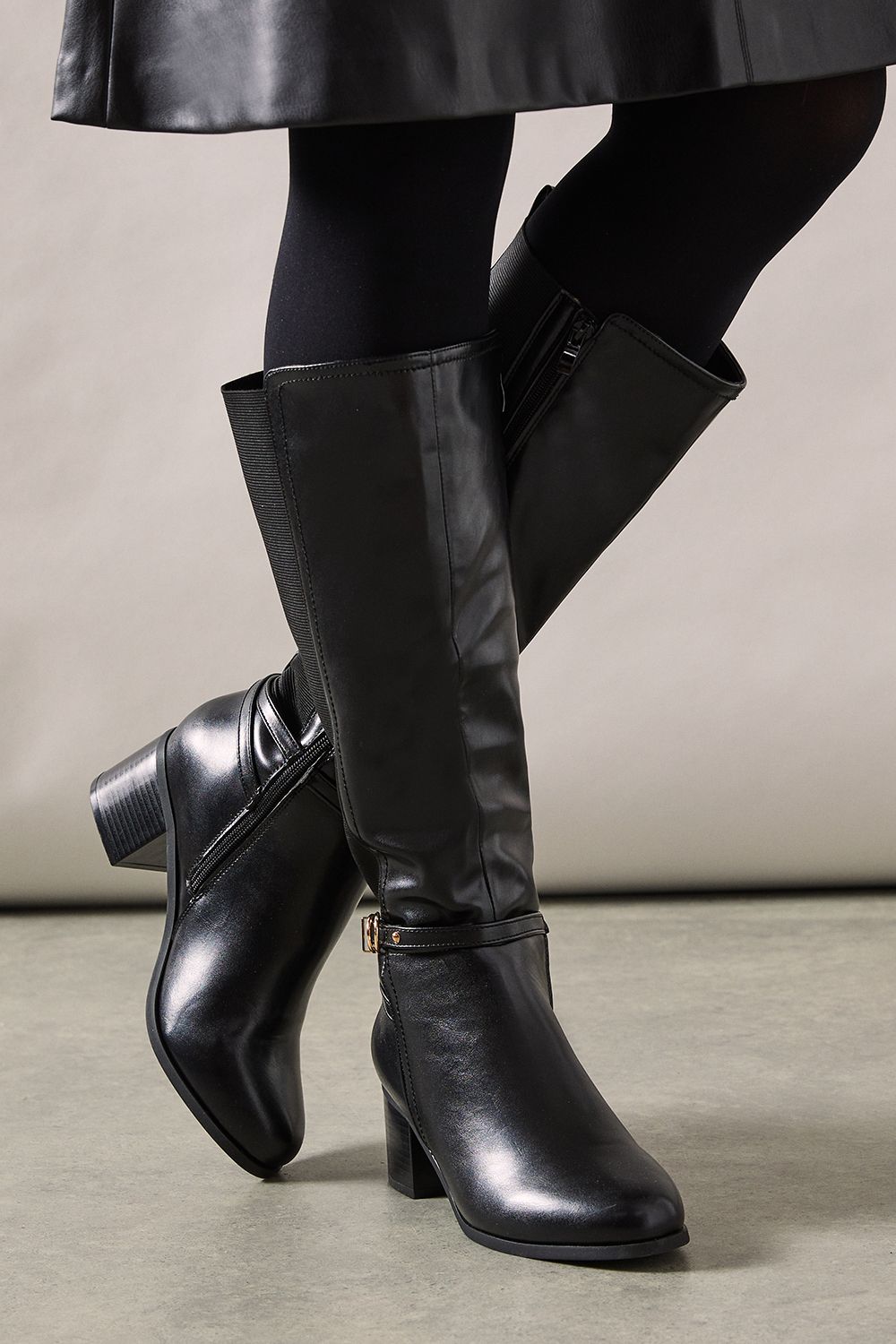 Wallis Womens Wide Fit Hills Strap Detail Elastic Back Block Heel Knee Boots - Black Material_synthetic - Size UK 8
