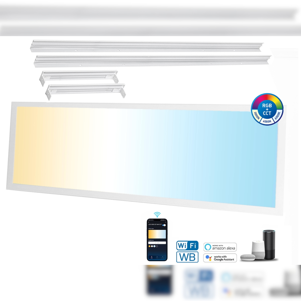 Aigostar 120x30 LED CCT Aufputz Bluetooth Mesh Smart Panel Leuchte Dimmbar (APP) Steuerung Aufbau-panel (inkl. Aufbaurahmen)