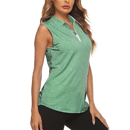 Per donna Tinta unita Maglietta sportiva Polo da golf Maglia da tennis Senza Maniche Cerniera Alta elasticità Traspirante Tennis Golf Pickleball Collo ripiegato Collo con zip Maglietta Top Azzurro