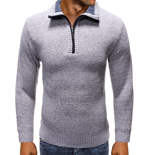 Per uomo Maglione Jacquard Felpa Maglione Maglione con zip a un quarto A Coste Maglia Top Regolari Lavorato a maglia Slim Fit Semplice Collo ripiegato Maglieria Contemporaneo Casuale Abbigliamento