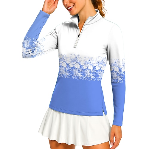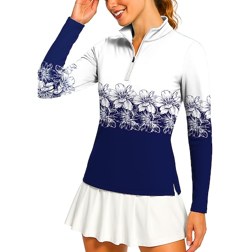 Per donna Geometrico Floreale Polo da golf Maglia da tennis Maglietta da tennis Manica Lunga Stampato Zip a un quarto Pullover Protezione UV Elastico Traspirante Tennis Golf Pickleball Collo Alto