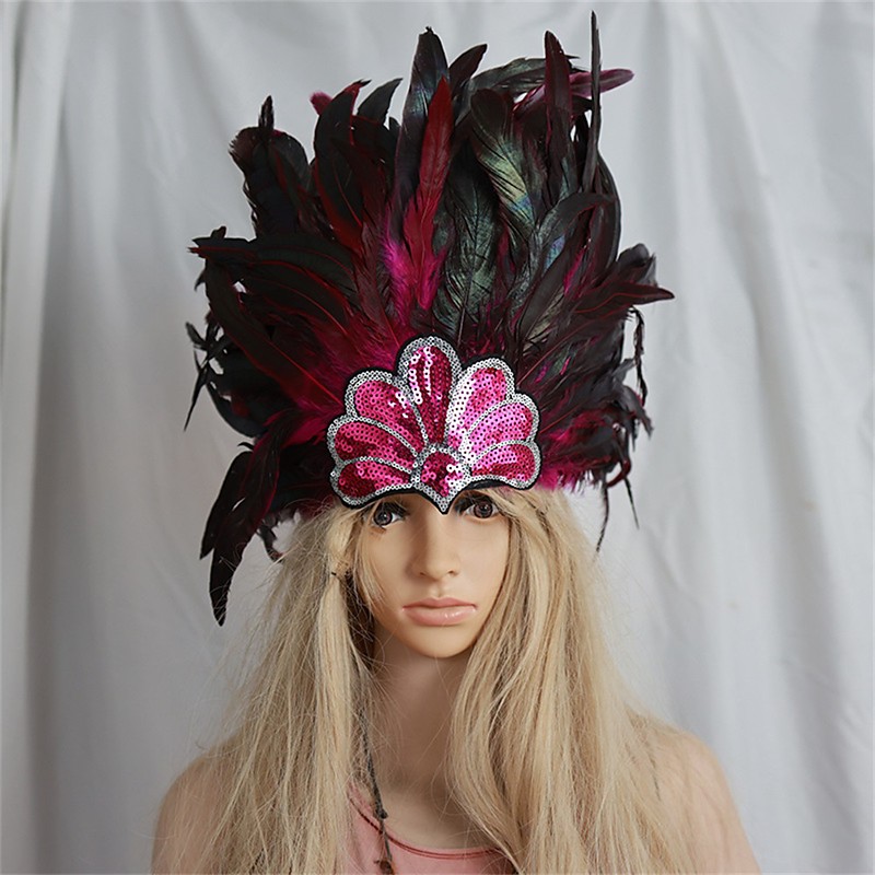 Carnival 2026Rio Carnival Samba Accessories Brown Orange Feather Headdress for Women - Gold Sequin Showgirl Costume Headpiece - Mardi Gras Accessory Brazil Festival Performance Costume