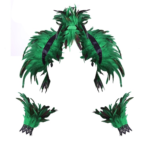 Accessori Samba Carnevale 2026 Rio Carnevale Mantello Stola Piume Verde e Nere Donna Costume per Festival in Brasile