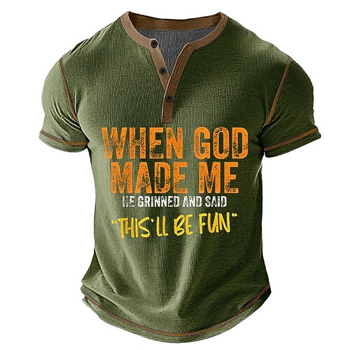 Maglietta a maniche corte Henley grafica divertente da uomo Quando Dio mi ha creato ha sorriso e ha detto sarà divertente