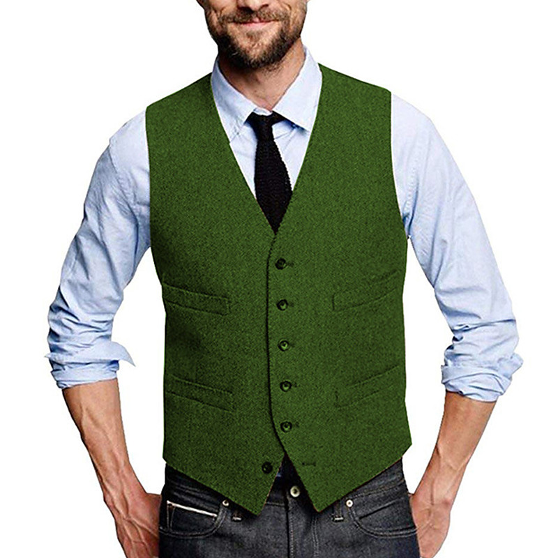 Men's Vest Waistcoat Gilet Vacation Daily Wedding Party Date Fashion Casual Spring Fall Buttons Pocket Polyester Comfortable Plain Single Breasted One-button V Neck Regular Fit Silver Black Red