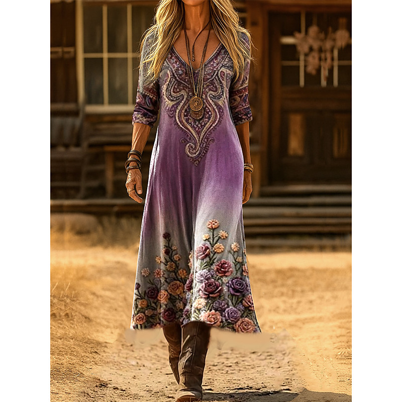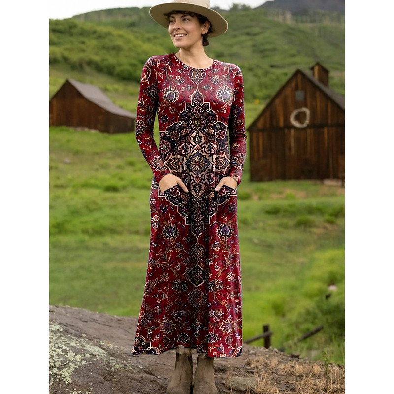 Women's Maxi Dress Sheath Dress Party Casual Boho Daily Date Going out Loose Fit Floral Graphic Paisley Long Sleeve V Neck Black Red Purple Orange Spring Fall Winter