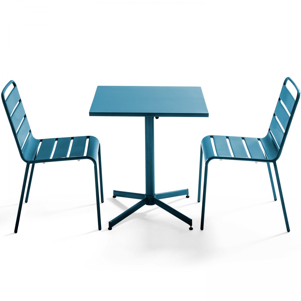 Tavolo da giardino quadrato e 2 sedie in metallo blu pacifico
