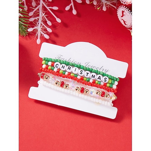 braccialetti natalizi con perline da donna, in lega e acrilico, nei colori festivi rosso, verde e bianco, gioielli natalizi con fiocchi di neve, ciondoli a forma di Babbo Natale e albero di Natale