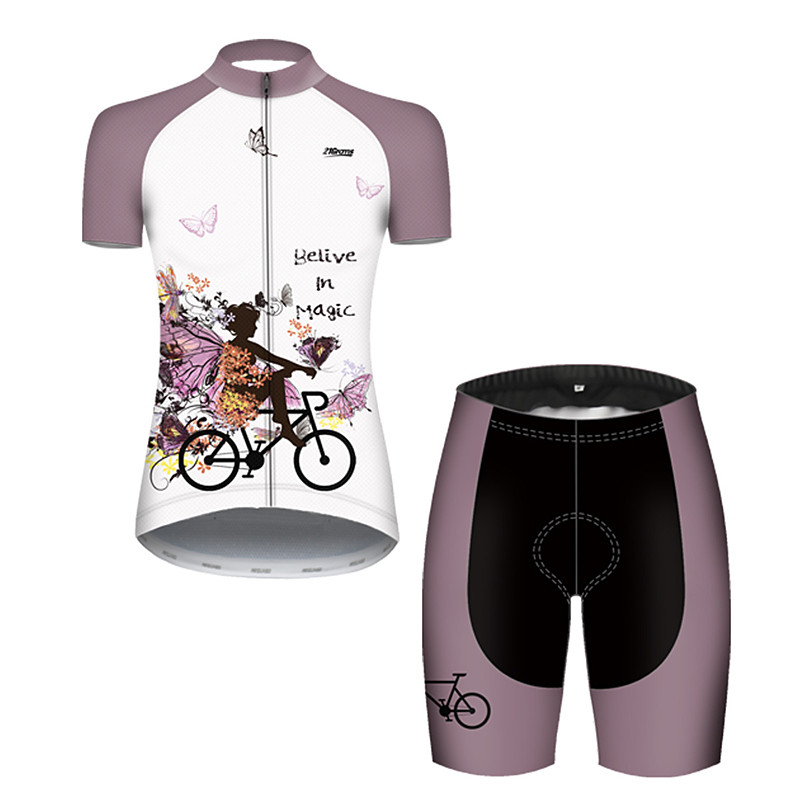Women's Cycling Jersey with Shorts Short Sleeve Mountain Bike MTB Road Bike Cycling Violet Pink Blue Graphic Bike Spandex Sports Clothing Apparel