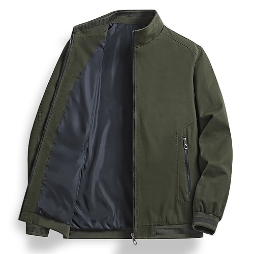 Herren Leichte Jacke Bomberjacke Sport Jacke Outdoor Sport warm halten Tasche Herbst Winter Glatt Modisch Strassenmode Ständer Standard Schwarz Burgunderrot Marineblau Khaki Armeegrün Jacken
