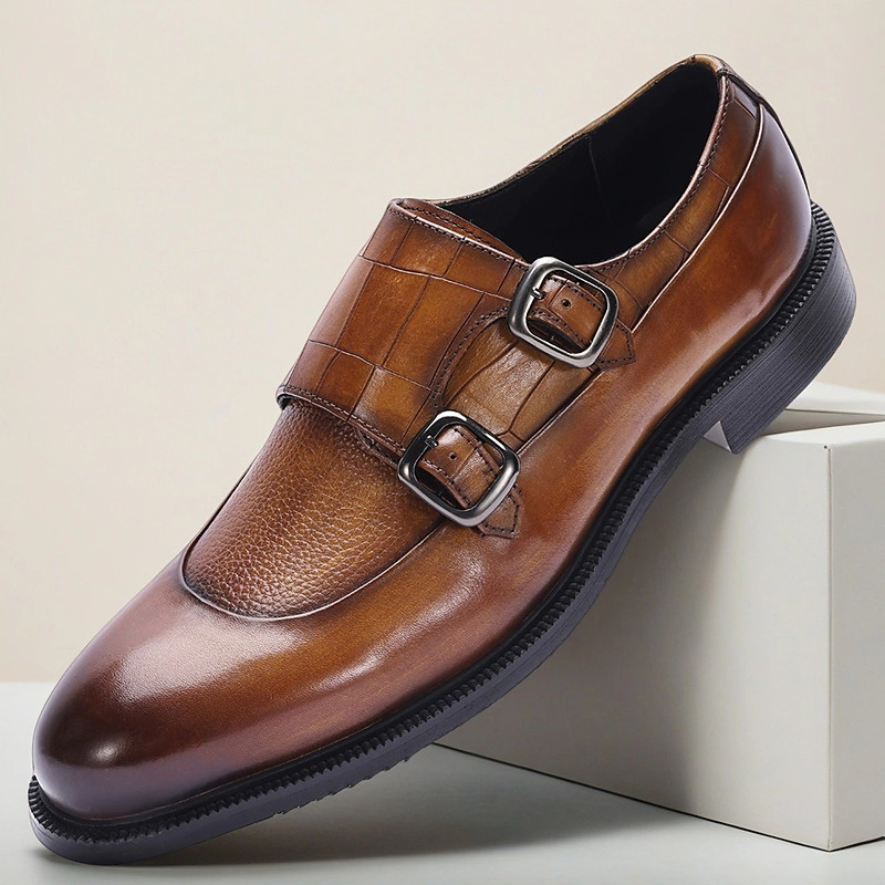Men's Two-Tone Leather Monk Strap Dress Shoes – Classic Buckle Loafers for Gentlemen, Business Meetings and Elegant Gatherings