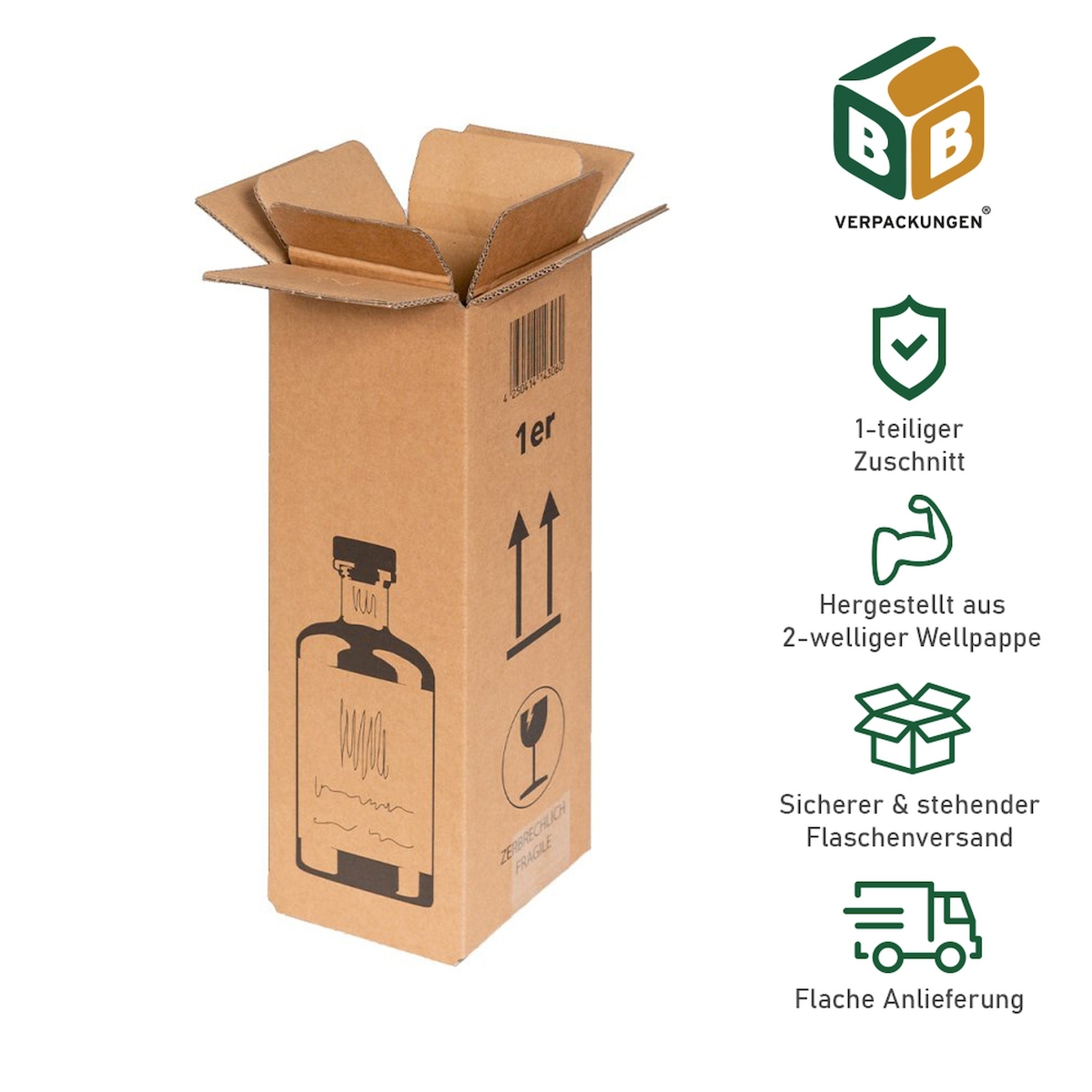 BB-Verpackungen GmbH BB-Verpackungen 5 x GIN-Flaschenversandkarton für 1 Flasche Gin (95 x 95 x 293 mm) für Transport und Versand