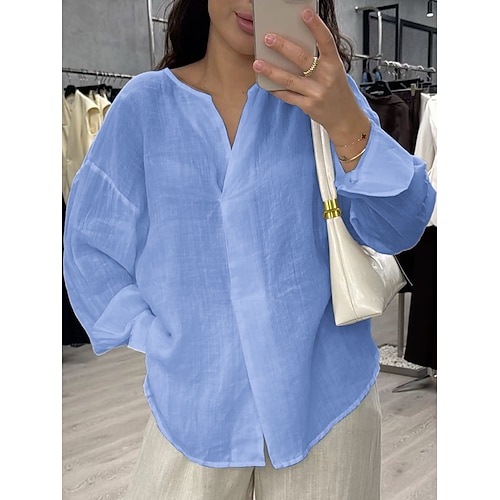 Per donna Camicia Casual Manica Lunga Scollo a V Top Regolari Quotidiano Bianco Giallo Verde chiaro Rosa Azzurro cielo Primavera Autunno