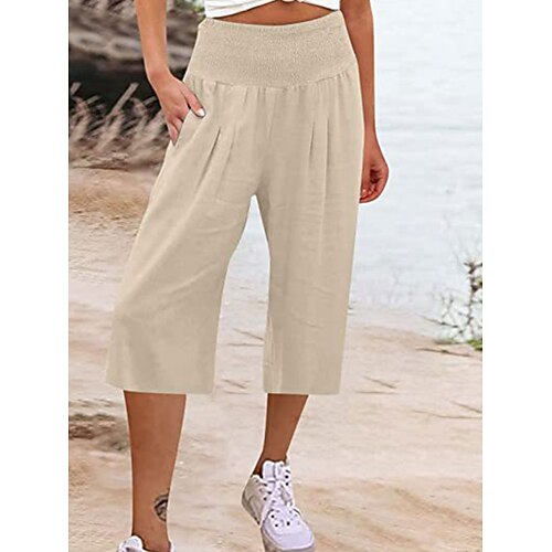 Per donna Pantaloncini in cotone e lino Pantaloni ispirati al lino Pantaloni in cotone e lino Moda Streetwear Essenziale Lunghezza al polpaccio Vita Alta Semplice Tasca Fascia Elastica Comodit