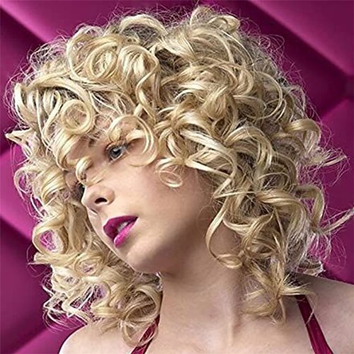 Perücke mit Pony, kurze, gewellte Perücken für Frauen, schulterlange, lockige Bob-Perücken, hitzebeständige Kunsthaarperücken für Halloween, Cosplay, den täglichen Gebrauch auf Partys