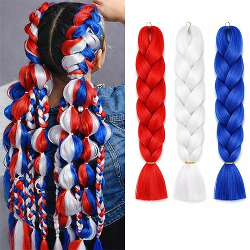 Dreifarbige, rot-weiß-blaue Jumbo-Zöpfe – lebendige Kunsthaarverlängerungen für kreative DIY-Bubble-Braids und Cosplay Sportveranstaltungen